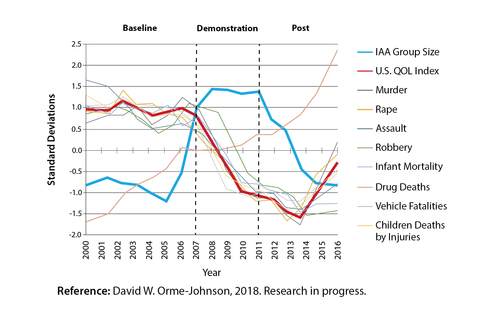 These studies show that the effect of the Super-Radiance group is holistic – improving many areas of society simultaneously. This confirms that the technology functions at a very fundamental level of social behavior, providing benefits to all areas of society.